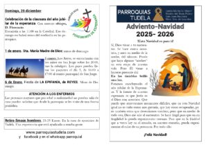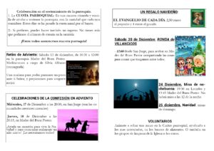 – Ronda de villancicos: el sábado que viene, a las 12:00 desde San Jorge, para terminar en Madre el Buen Pastor, compartiendo lo que traigamos entre todo.